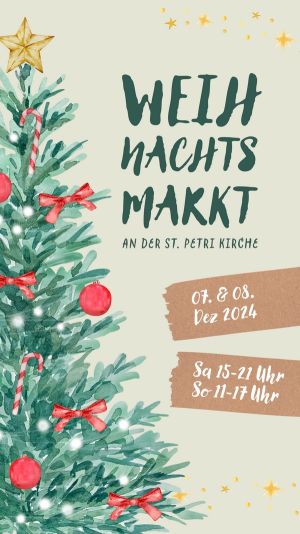 Zum ersten Mal veranstalten die Kirchengemeinden, ortsansässige Vereine, Verbände und Parteien einen gemeinsamen Weihnachtsmarkt. Rund um die St.-Petri-Kirche und im Gemeindehaus am Küstergang erwartet die Besucher am 2. Adventswochenende ein buntes Angebot. Am Samstag, 7. Dezember, von 15 bis 21 Uhr, und am Sonntag, 8. Dezember, von 11 bis 17 Uhr wird für das leibliche Wohl gesorgt sein und ein vielfältiges Programm lädt zum Hören und Mitsingen ein: Glühwein, Kunsthandwerk, Chöre und auch der Nikolaus kommt vorbei.
