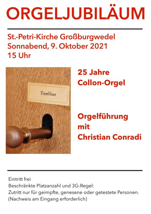 Das 25-jährige Orgeljubiläum konnten wir am Ostersonntag coronabedingt nicht feiern, dafür feiern wir es nun mit diesen drei Veranstaltungen im Oktober.