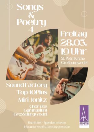 Am 28. März findet um 19:00 Uhr in der St.-Petri-Kirche bereits zum vierten Mal der Konzertabend „Songs & Poetry“ statt.