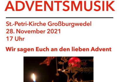Unter dem Motto "Wir sagen Euch an den lieben Advent" gestalten St.-Petri-Kantorei, Kreiskantor Christian Conradi, Lektorinnen und Pastorin Bodil Reller eine Adventsmusik (2G-Veranstaltung). Telefonische Anmeldung erforderlich.